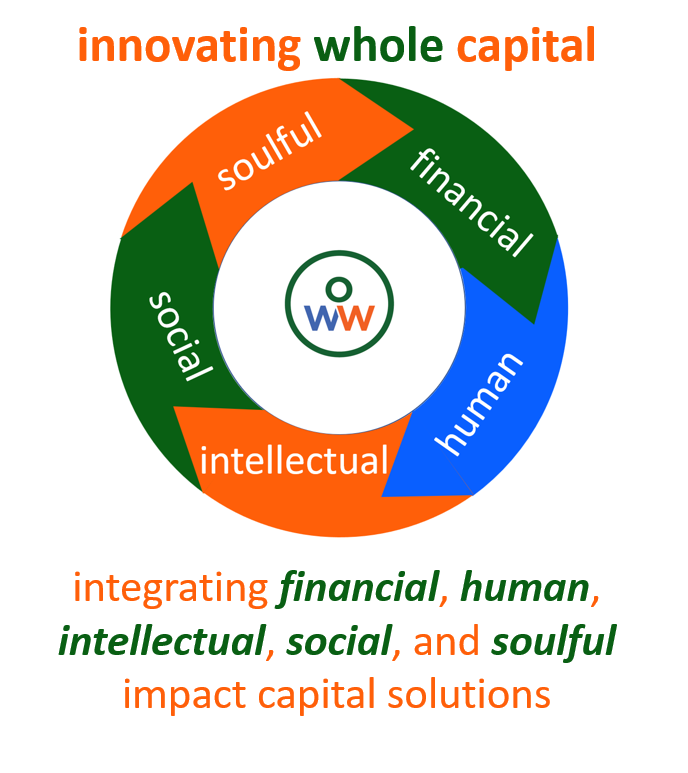 innovating sustainable whole capital solutions, by integrating financial, human, intellectual, natural, social, and soulful elements, to co-create human fusion with unisity (unity + diversity)